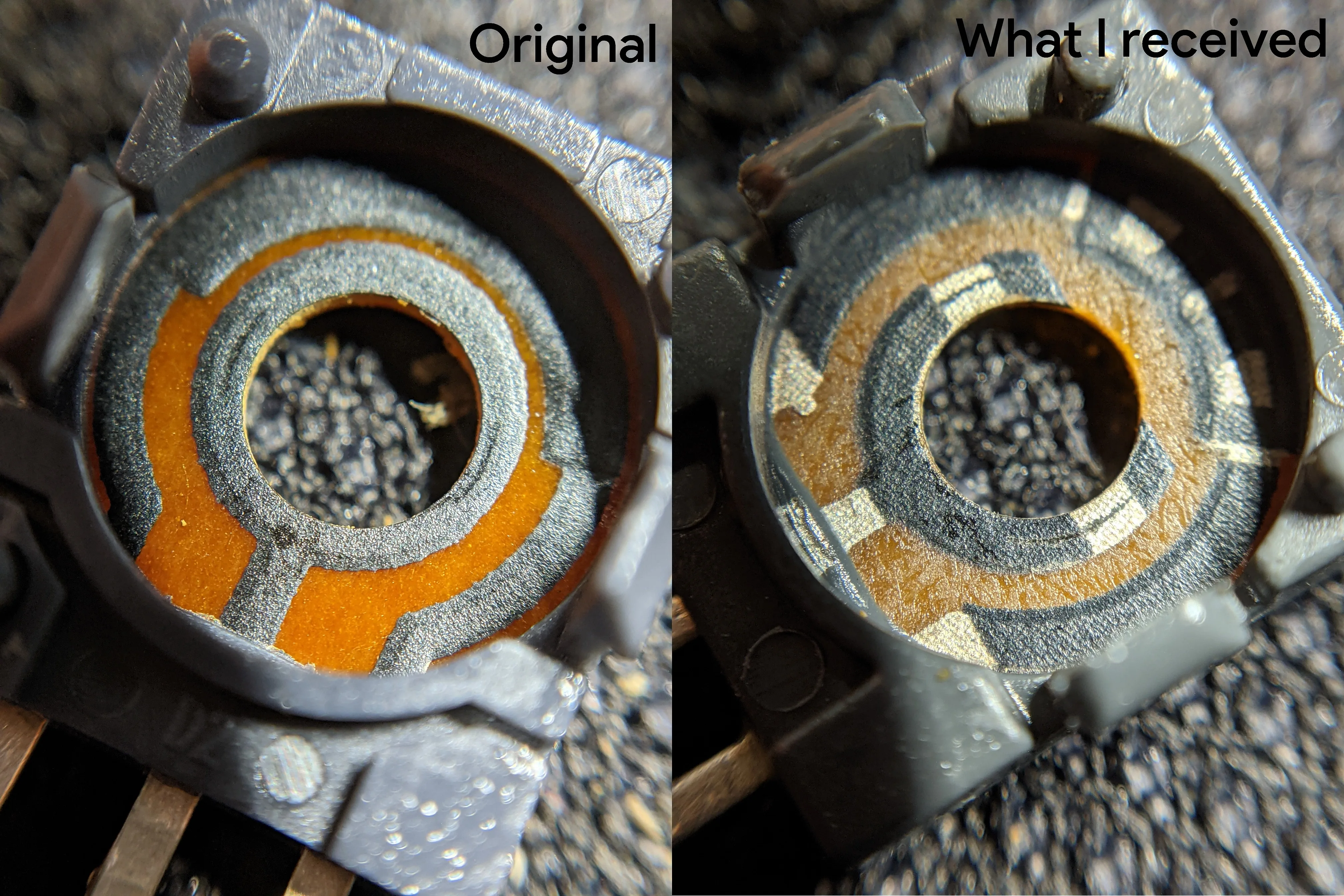 Наконец-то спаянные эти модули и, по всей видимости, они не высокого качества. После сборки геймпада я понял, что мертвые зоны безумные, и неудобно использовать геймпад «fixed'». В то время как механические части модулей в порядке, потенциометры, безусловно, ужасно и низкого качества. Мне пришлось снова разобрать свой геймпад и удалить новые потенциометры, оставив на месте механическую часть модулей, а затем припаять старые потенциометры. До этого я открывал их и сделал фотографию. По всей видимости, разница между оригинальными и вашими голенищами очень велика. Но дело в том, что многие игры могут компенсировать проблемный вход, и если вы еще не пробовали оригинальный геймпад, скорее всего, вы не будете иметь ни единого представления, если что-то не так. Оригинал всегда лучший. Таким образом, учитывая цену, это нормально.