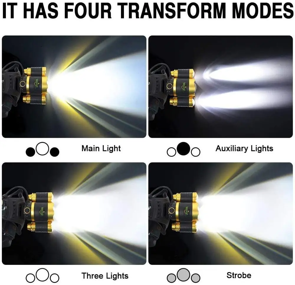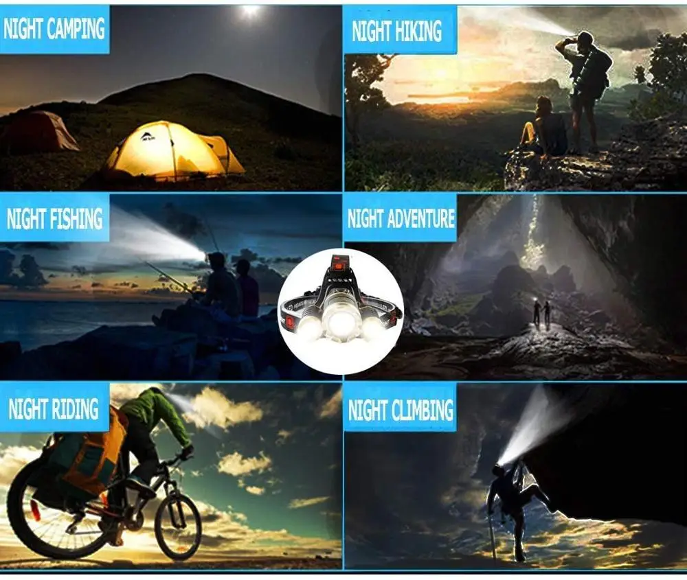 Налобный фонарь с зумом, мощный фонарь для кемпинга с аккумулятором 18650