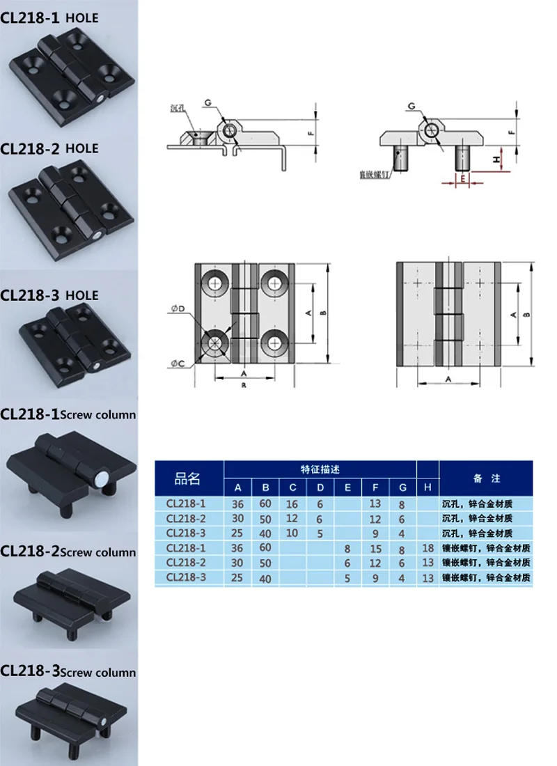 CL218-1Black отверстие:Шарнир CL218 черного цвета с 4 отверстиями;