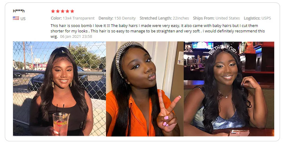 * Это мой честный обзор этого парика * поэтому я заказал этот парик для моего выпускного вечера, и мне это очень нравится! Прежде чем разместить заказ, я связался с компанией и спросил, могу ли они показать мне 13X6 кружева. Они быстро ответили и отправили мне фотографию кружева. Там они помогли мне осуществить покупку. Я сообщил им, что мне нужен этот парик на важный день, поэтому как только я разместил заказ, они быстро отправили мой заказ. Я получил волосы в течение 4 дней! Волосы были полными и густыми и мягкими. Длина парика была немного короче, чем я ожидал, но я думал, что это только потому, что получил объемную волну. Парик не проливается много, и он не запутывается. Я бы оценил этот парик на 9/10. Я обязательно куплю волосы у этой компании снова. Я настоятельно рекомендую этот парик. -- (я жду, когда мои фотографии будут возвращены с выпускного вечера. Но когда они возвращаются, я попробую добавить некоторые в мой обзор.) -- @ _ jalynnet