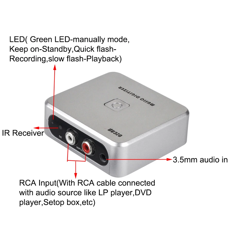 Музыкальный дигитайзер EZCAP Audio Capture преобразует старую аналоговую музыку в MP3 с поддержкой usb-накопителя или sd-карты с пультом дистанционного управления
