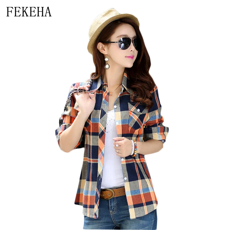 Рубашка женская в клетку, повседневные хлопковые топы с длинным рукавом, одежда на весну