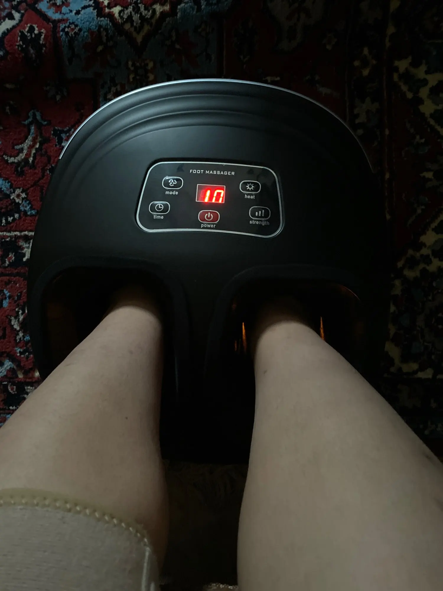 Понравился массажёр, работает за свои деньги отлично. Расслабляет ноги, массаж в меру, не сильно и не слабо.