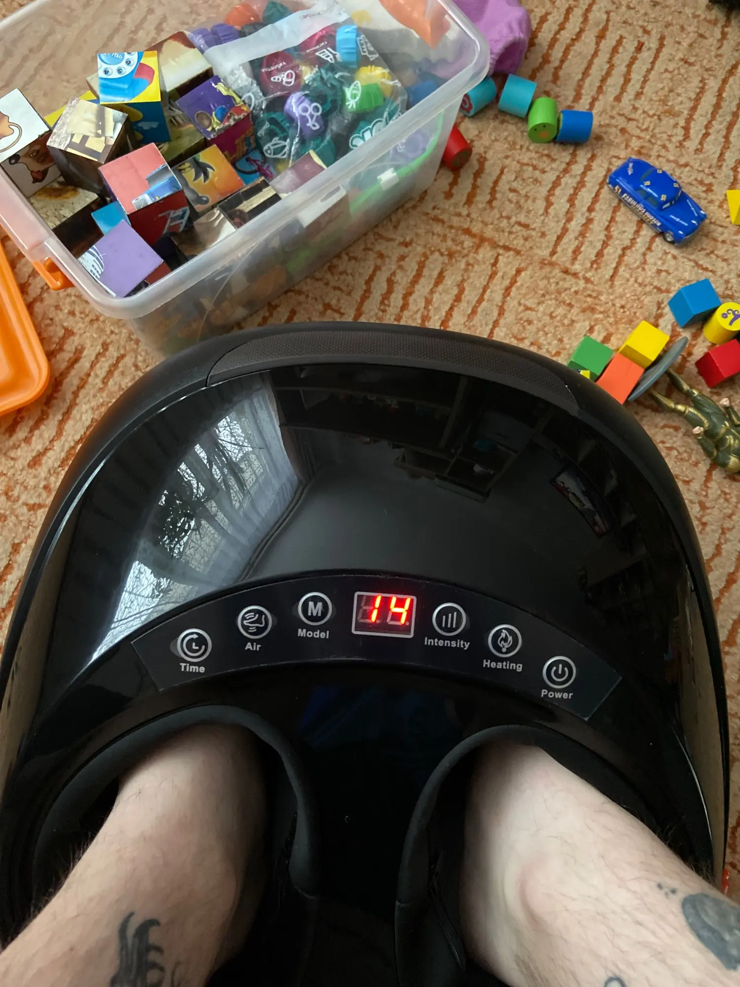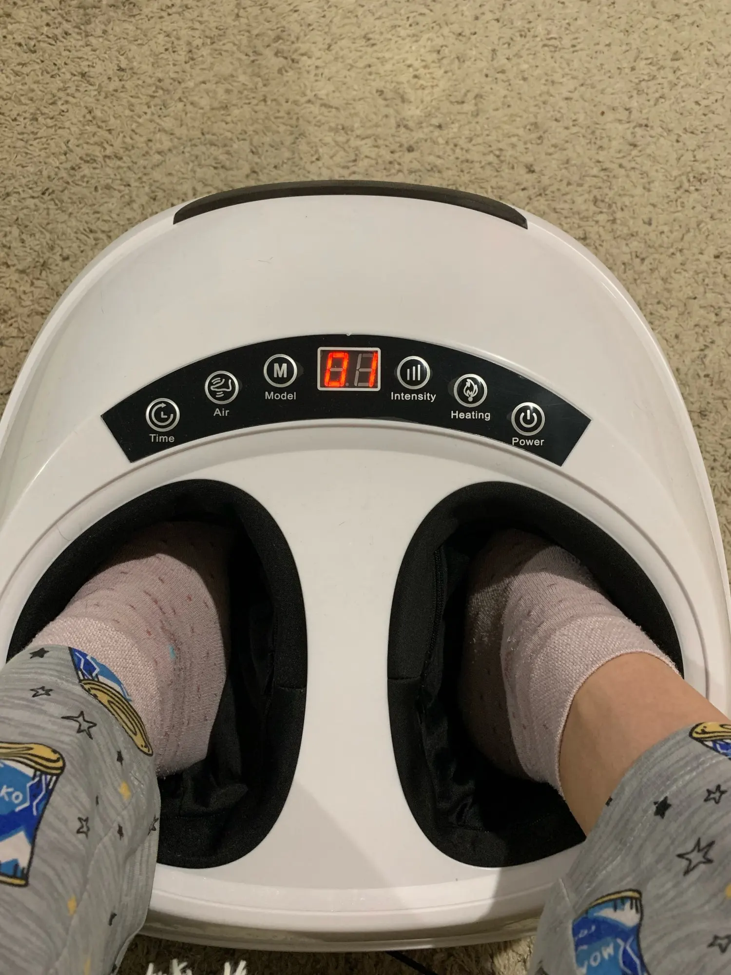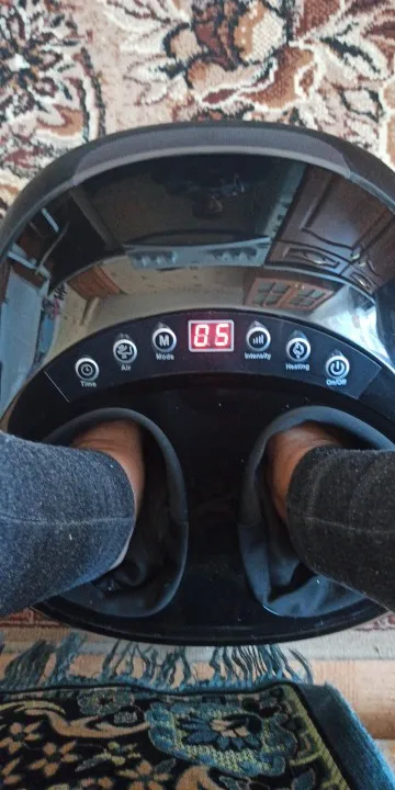 Товар шёл на подарки к новому году, пришли подарочки. Все работает, инструкция на английском. Но это не сравнивать с масажем от массажиста. Но крутит верит, надуваеться и задимает стопы 3 вида массажа и 9 видов интенсивности это скорее всего для маленьких ножек чтоб массажёр уменьшил места для массажа, мне, 43р.ноги на интенсивность на 5 Максиму, потом уже ноги так сдавать начинает и до максимума ещё прибавить мог, читаей мат. Часть и пользуй с умом. Даволен, с натяжкой)
