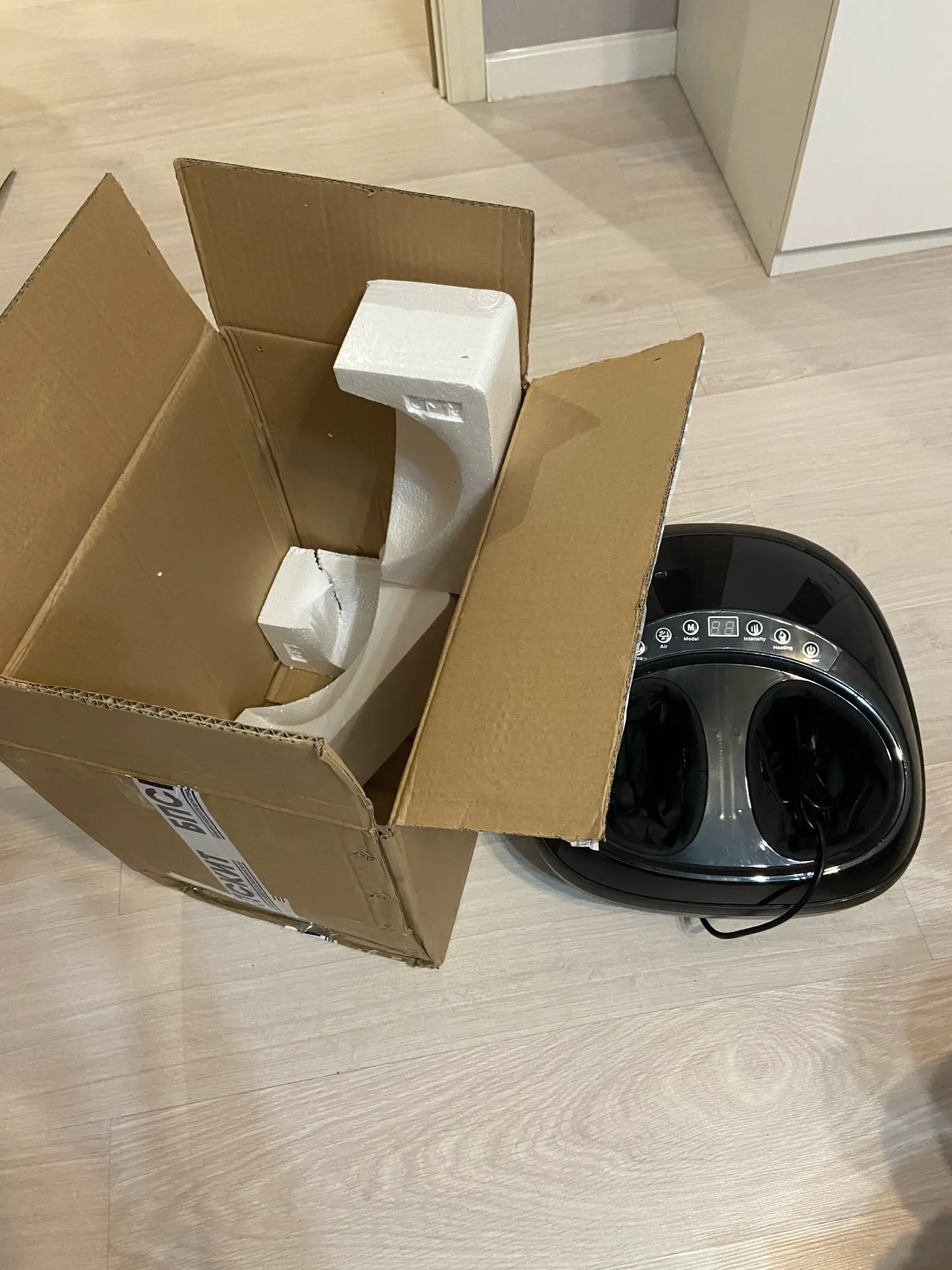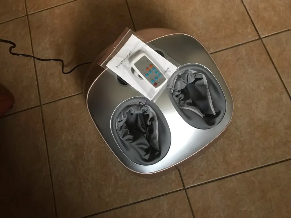 замечательный массажер для ног. у мужа проблемы с ногами. массажирует замечательно. разные режимы массажа, а главное подходит для полного 45 РАЗМЕРА. доставили в квартиру на девятый день.