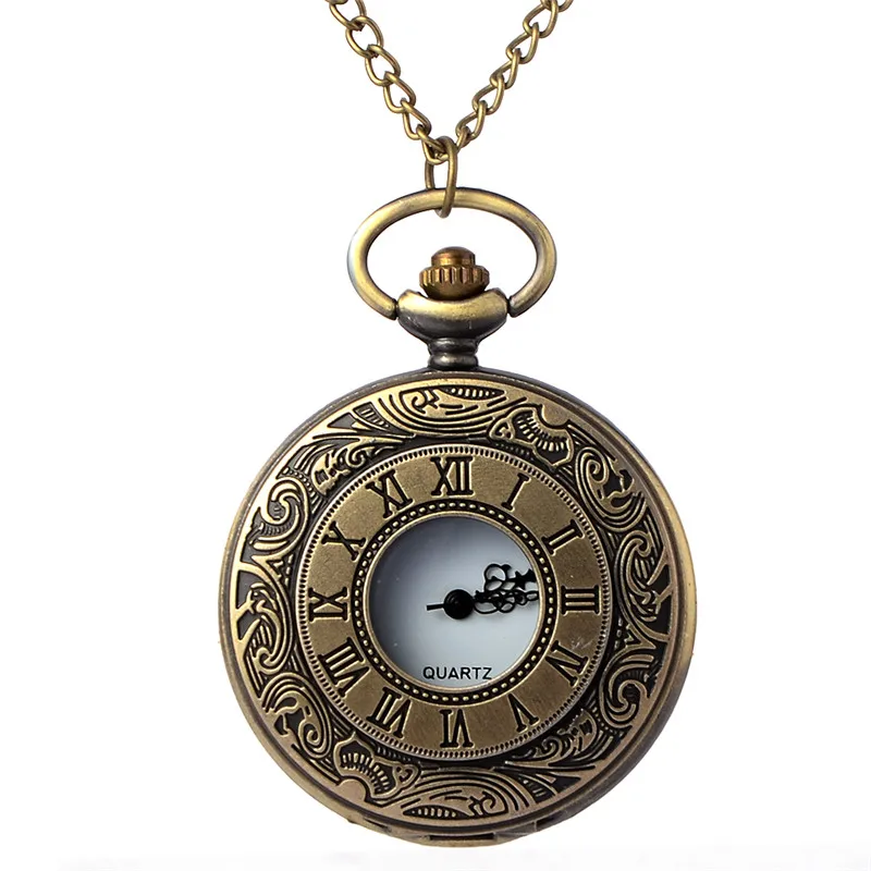 Винтажные бронзовые карманные часы в стиле стимпанк с римскими цифрами, кварцевые карманные часы с цепочкой для мужчин и женщин