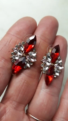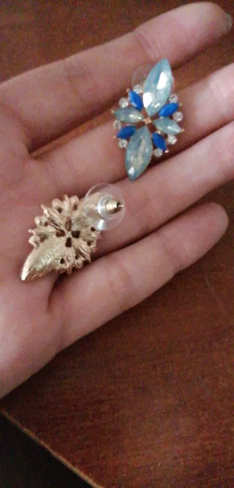 Милые серьги по низкой цене. Серьги длиной около 2 см и шириной 1,3 см. Эти зеленые серьги-гвоздики сочетают различные камни разных цветов, блеска и текстуру, некоторые из которых имеют легкий блеск. Благодаря этой комбинации серьги выглядят красиво, не переживайте, как дешевые «Bling». Они были отправлены почти мгновенно, и я получил товар в течение двух недель. Я получил много положительных отзывов об этих сережках.