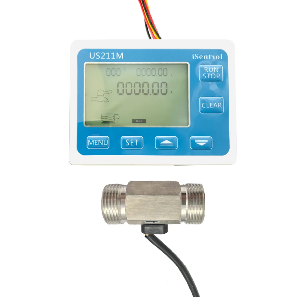 Горячая вода US211M цифровой расходомер Totalizer с SUS304 Датчик потока USS-HS43TB G34 "Датчик Холла потока 2-45LPM iSentrol