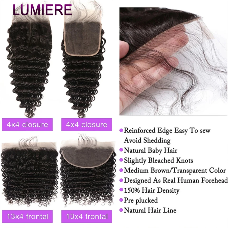 32, 38, 40 дюймов, пучки с глубокой волной, с закрытием, перуанские человеческие волосы, плетеные пучки с фронтальной застежкой, Remy, глубокие вьющиеся волосы для наращивания