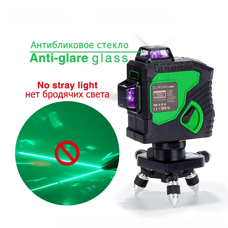 Clubiona лазерный 3D уровень, Самонивелирующийся мощный лазерный уровень, сертифицированный аккумулятор