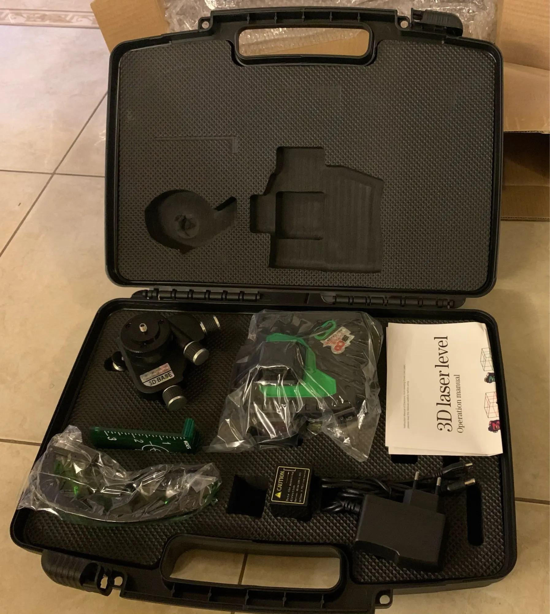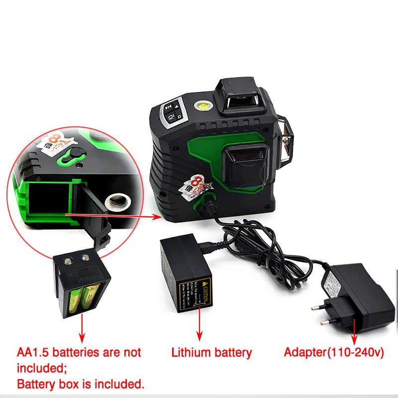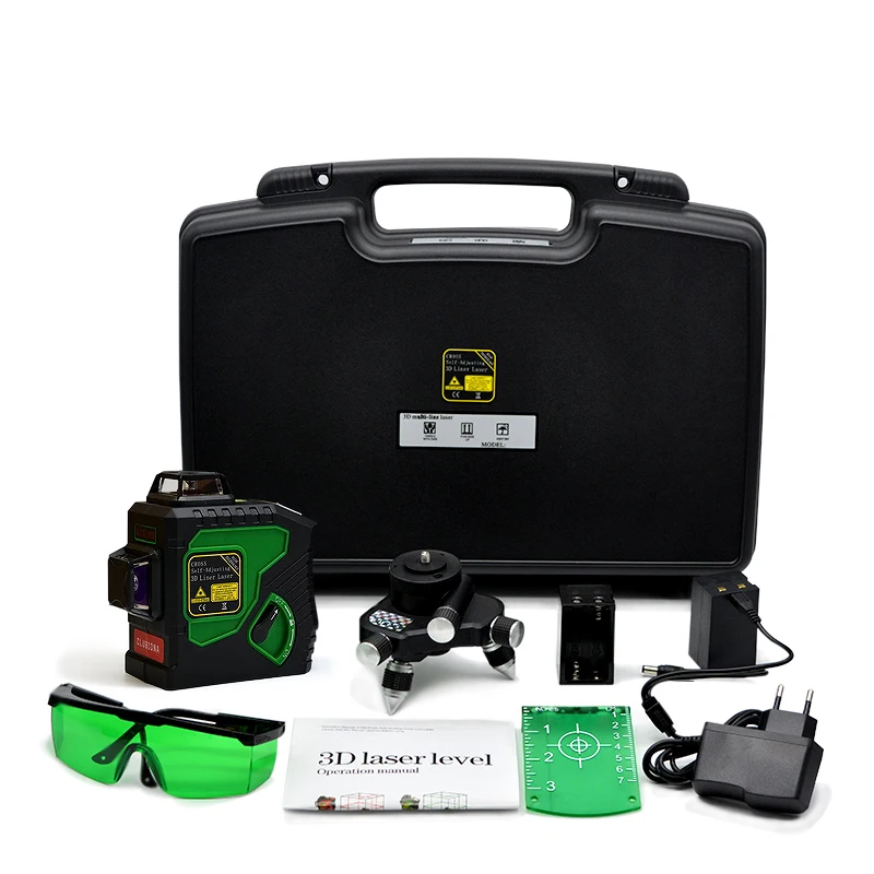 3D 12 линий зеленый луч высокого качества лазерный уровень: 1 шт.Регулируемое треугольное Основание: 1 шт.Высококачественный пластиковый чехол: 1 шт.Отсек для щелочных батарей: 1 шт.Целевая плата (зеленая): 1 шт.Очки высокого качества: 1 параМногофункциональный адаптер: 1 шт.Руководство: 1 шт.
