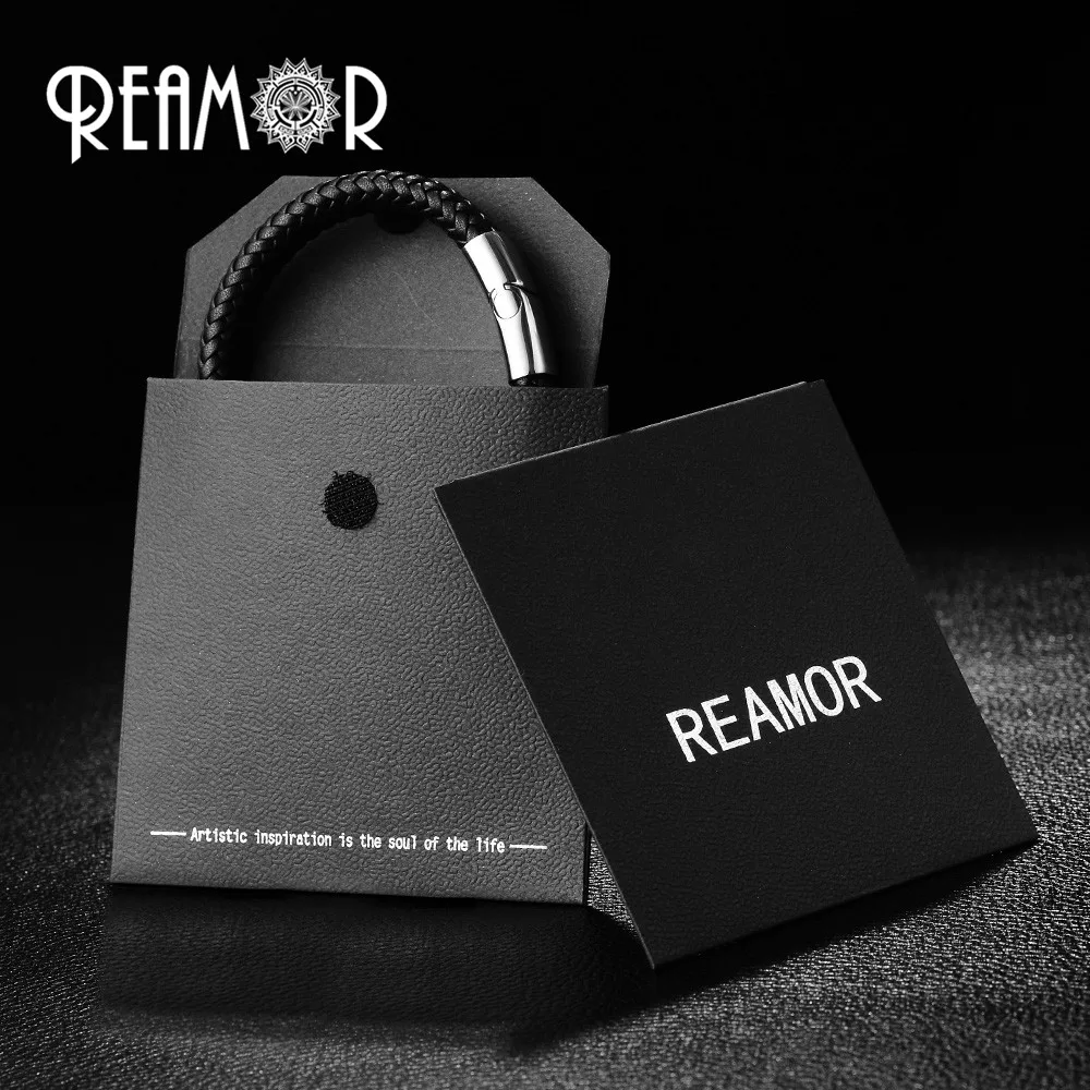 REAMOR ювелирные изделия размер отверстия 8 мм 316l браслет из кожи...