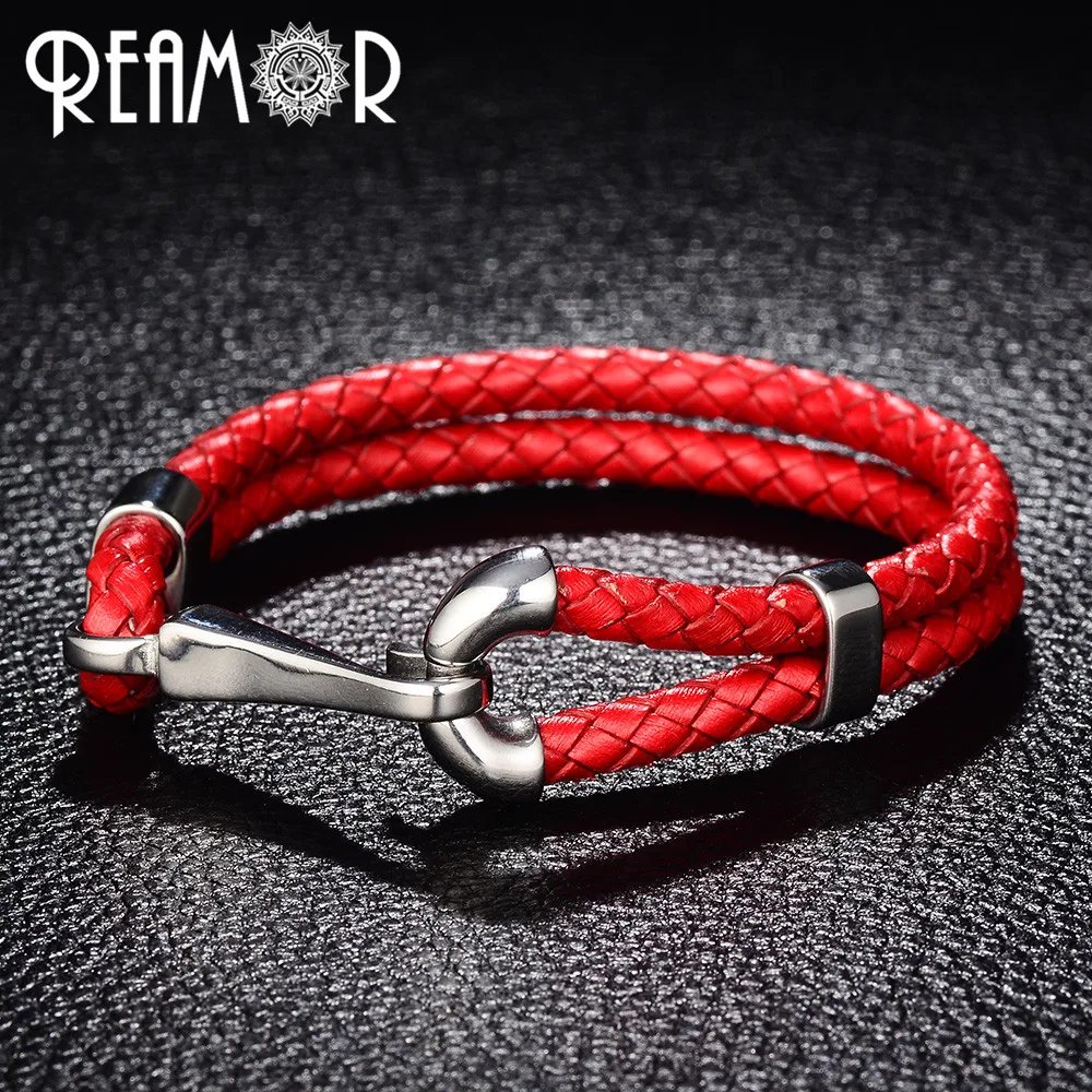 Женский кожаный браслет REAMOR, красный двойной плетеный браслет на...