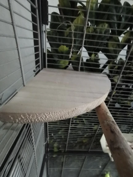 Платформа изготовлена из мягкого дерева. Попугай грызёт её, и у него это очень хорошо получается. Не удевлюсь, если он её полностью сгрызет однажды