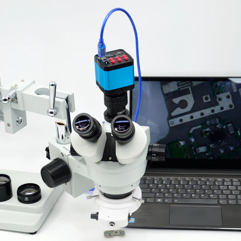 Микроскоп FYSCOPE 3.5X-90X, микроскоп с двойной стрелой, с многофокальным стерео увеличением, микроскоп + 14MP HDMI камера + 144pcs led