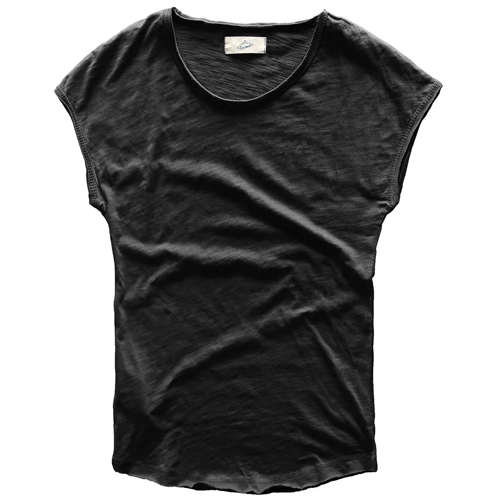 Мужская хлопковая футболка Zecmos, облегающая, с закругленным подолом, лето