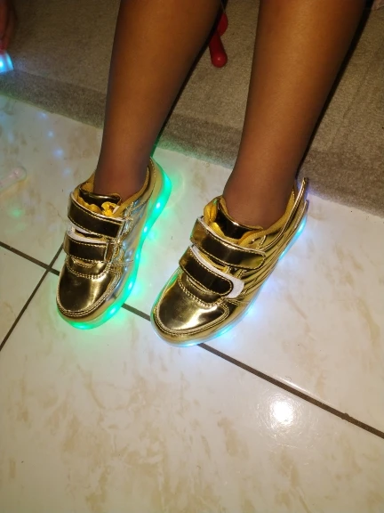 Очень рада покупке! Посылка дошла очень быстро. Чуть больше двух недель ждала я кроссовочки. Сами кроссовки очень хороши! Размер совпадает. Всё работает. Очень красивые. Пошиты аккуратно. Несколько вариантов подсветки. Переключением кнопки можно менять цвет лампочек.