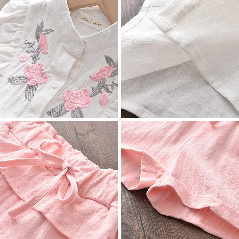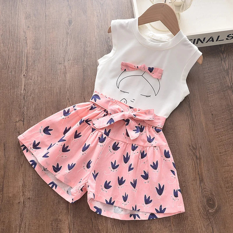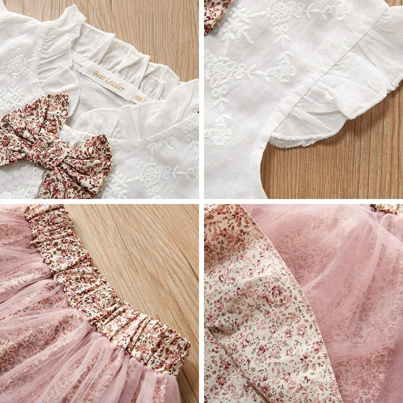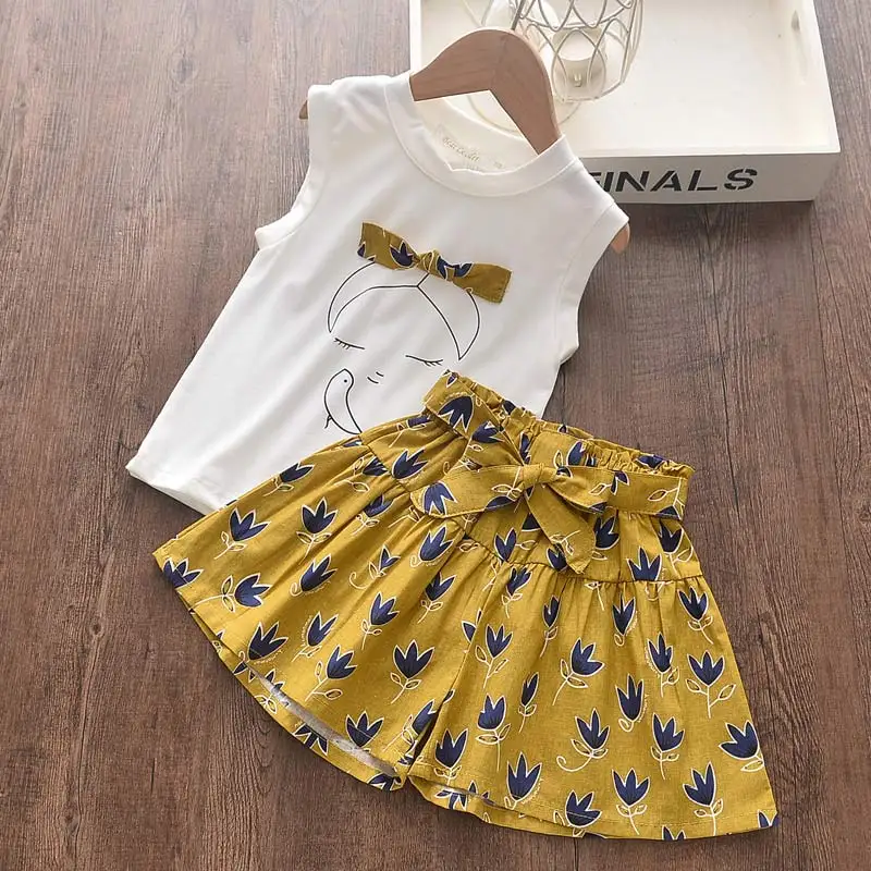 Bear Leaderкомплекты одежды для девочек Новая летняя футболка без рукавов + юбка с бантом и принтом комплекты детской одежды из 2 предметов одежда для малышей