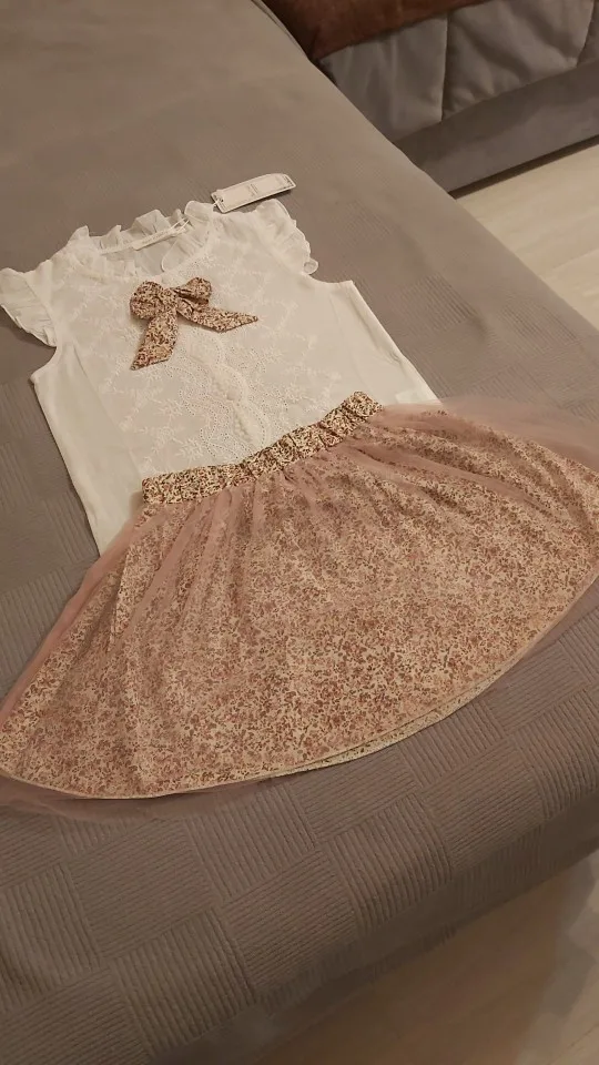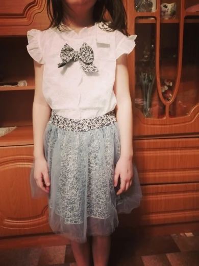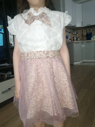 цена немного завышена, очень тоненькая ткань на кофточке, юбка в реале смотрится гораздо проще. качество пошива хорошее. фото позже
