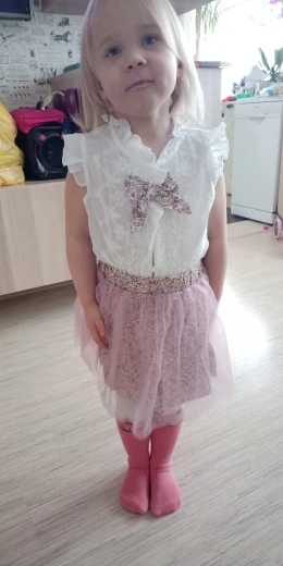 Красиво. Для нашей девочки 3 лет и 18 кг, я купил размер 5. Идеально! Спасибо. Уже делает второй заказ дома.