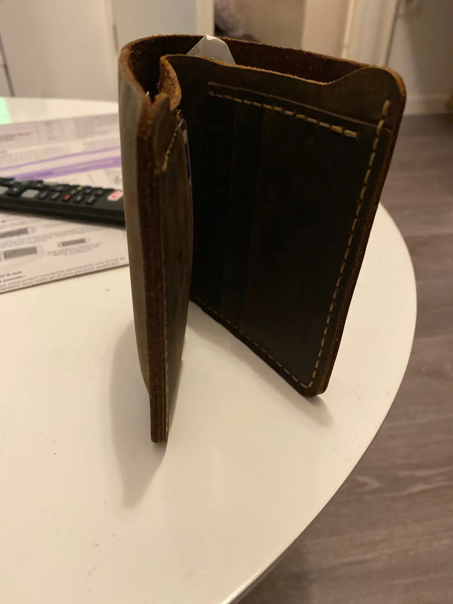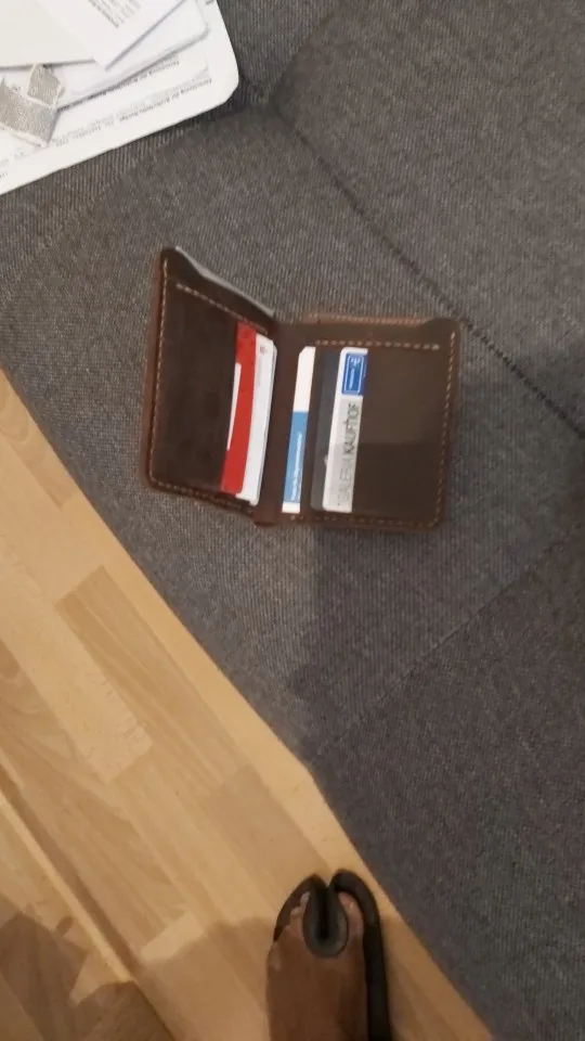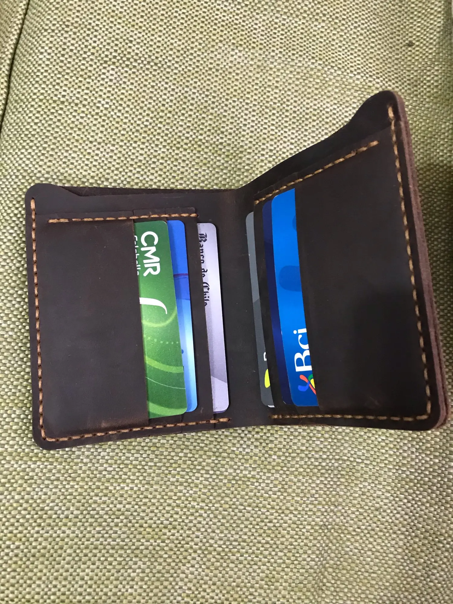 Очень хорошее качество сборки, швы очень хорошо сделаны и устойчивы. Размер Кошелька идеально подходит для ношения в кармане. Карты немного тугие, но я думаю, что с использованием они будут в порядке. Я рекомендую