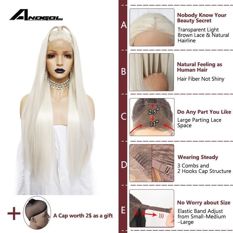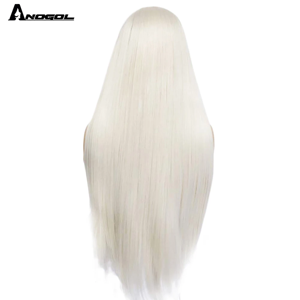 Anogol платиновый блонд натуральные волосы парики 613 длинные шелковистые прямые синтетические кружева спереди парик для белых женщин
