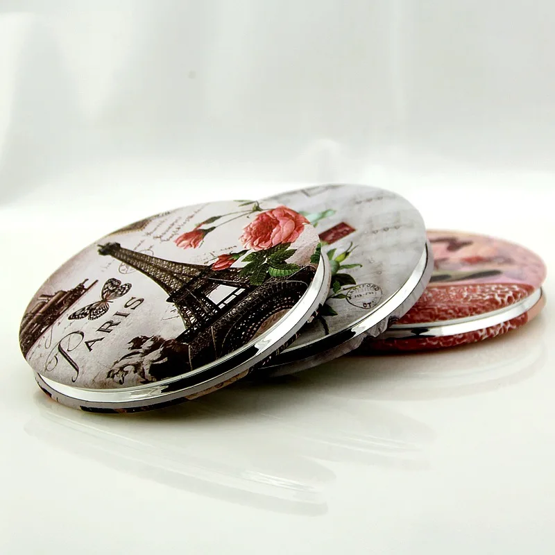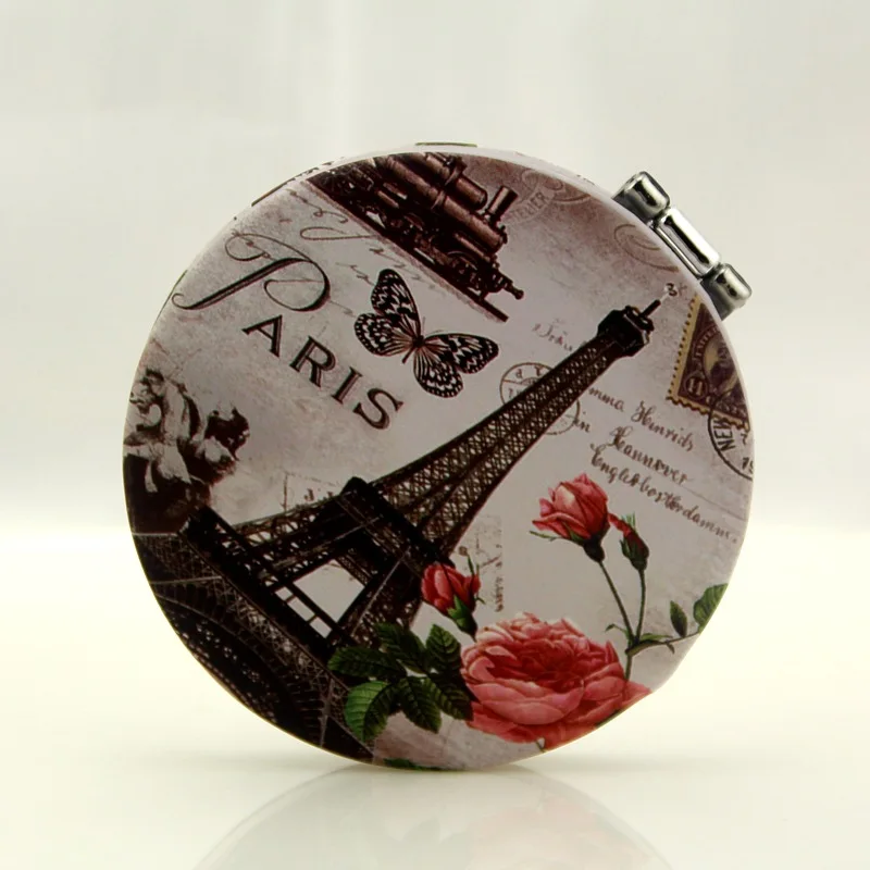 Портативное двухстороннее зеркало для макияжа с карманом, рамка из нержавеющей стали, Эйфелева башня, Косметика для макияжа, мини-косметика, нормальное увеличение