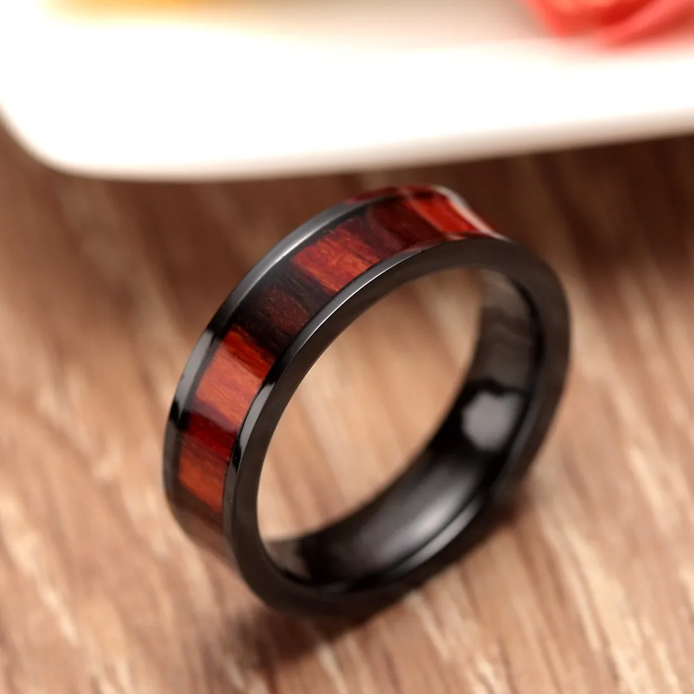Tigrade 2 шт.лот Уникальные парные кольца деревянная инкрустация плоское винтажное титановое кольцо для мужчин и женщин деревянное обручальное кольцо для влюбленных