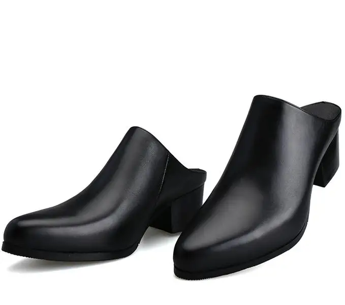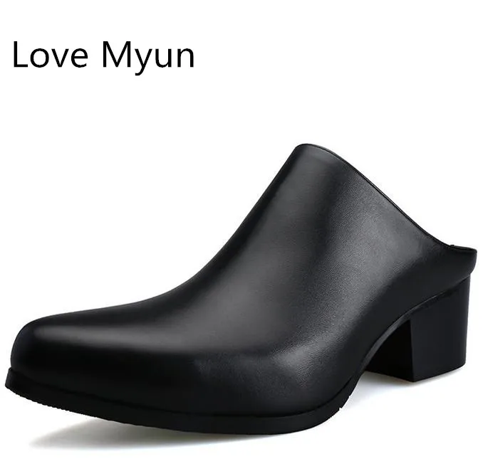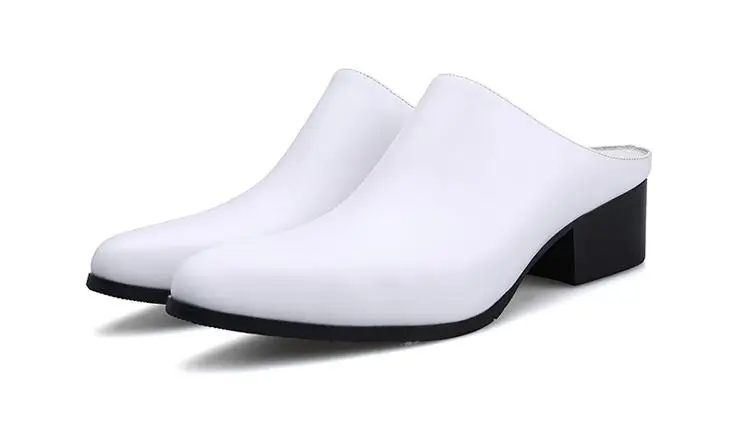 Новинка, мужские слиперы из натуральной кожи с острым носком, на высоком каблуке 5 см, летние мужские модные слиперы, белые, синие, черные