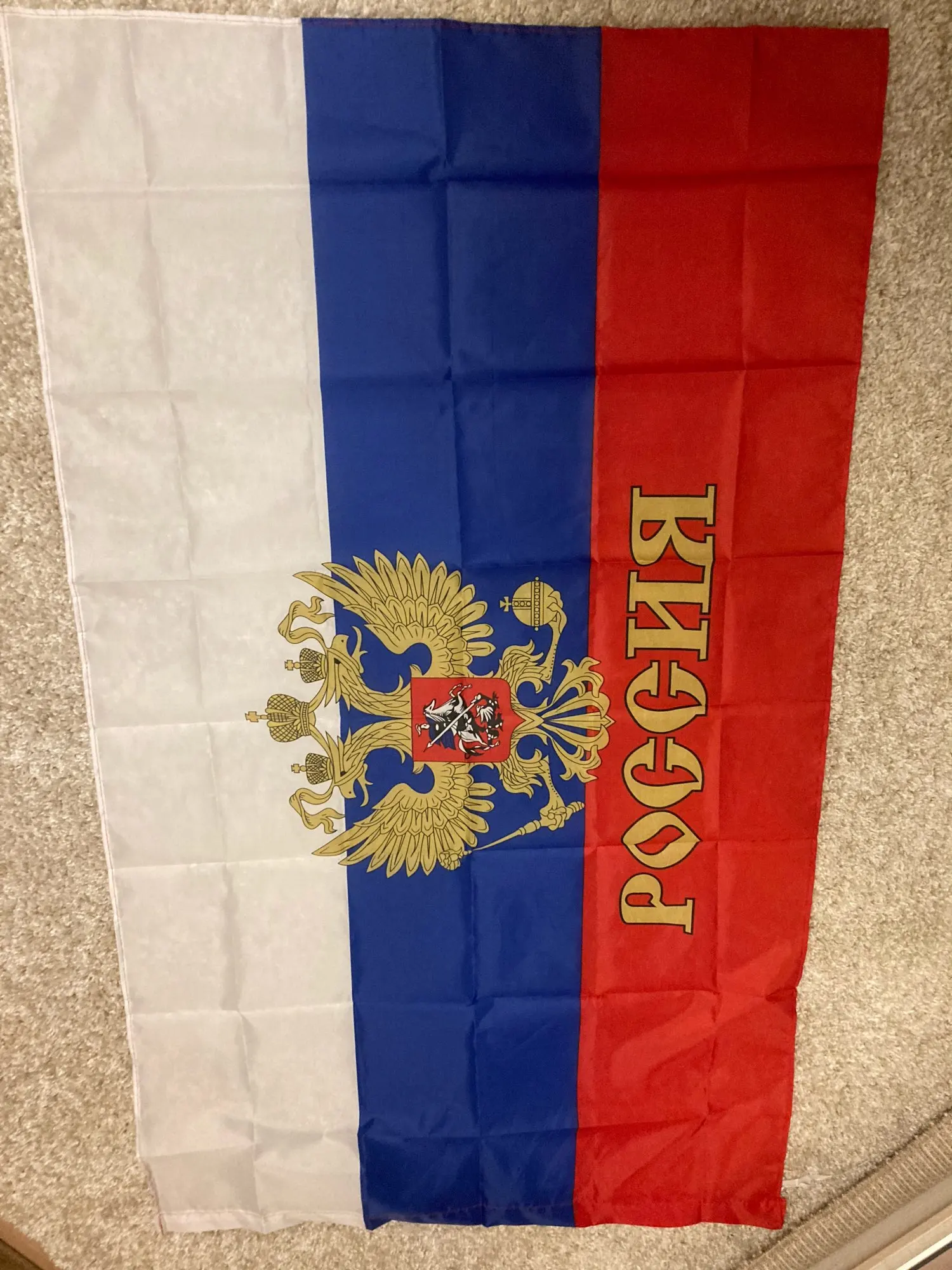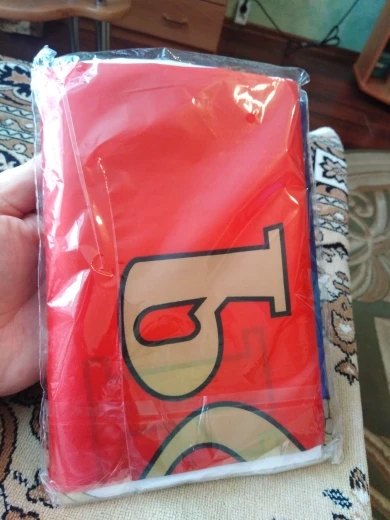 очень крутой флаг !материал прям супе р развивается на ветру как огромная простынь .только цена как мне кажется не много завышена .если было бы дешевле то я б заказал бы их несколько штук в подарок брату свату и маме с папой и жене с сыном в подарок .и да быстрая очень доставка дригорода Волгоград .правда не много помята упаковка но на работу изделия это не повлияло .