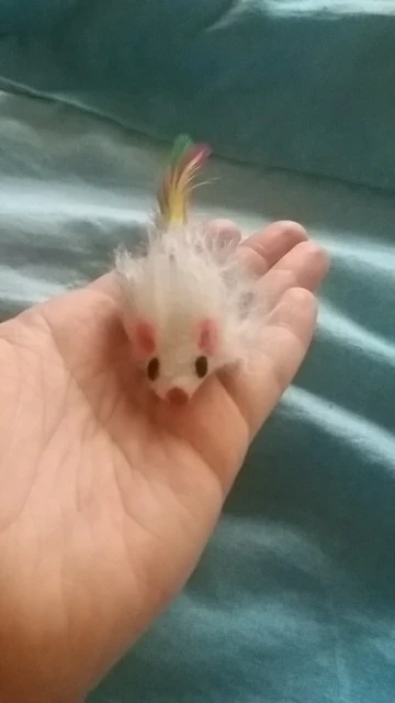 Классные мышата, второй раз заказываю у данного продавца, и всё прекрасно. Кот просто без ума от мышей))) Жаль, что раскраска мышей одна и та же (такая же и при первой покупке была), хотя в описании показано что могут быть и другие расцветки... Посылка до Перми за 15 дней.