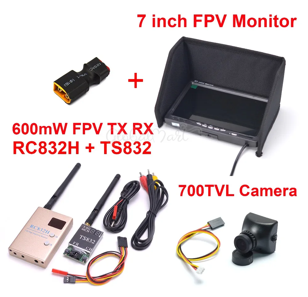 FPV 5,8G 600mW 48CH беспроводной TS832 передатчик RC832H RC832 приемник 7 дюймов 7 "LCD TFT 1024x600 монитор без синего 700TVL камеры