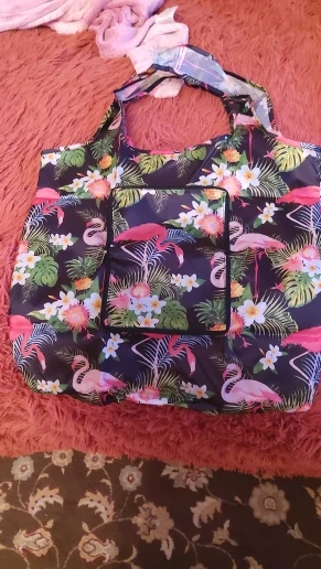 Очень милая сумка. Средний размер. Красивые цветы и фламинго.