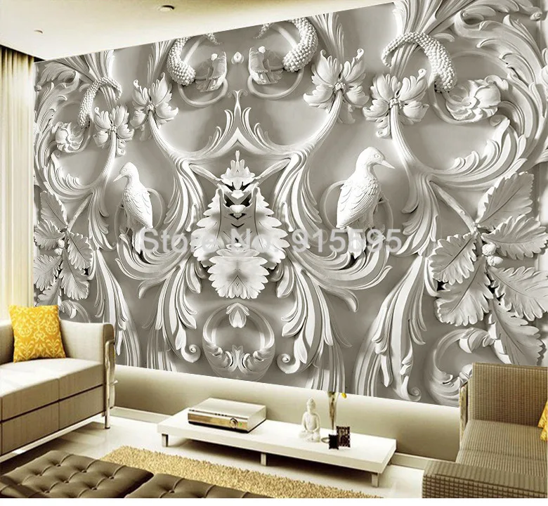 Настенные обои любого размера на заказ, белые классические рельефные 3D стерео обои в европейском стиле для гостиной, фона за телевизором, настенные фрески