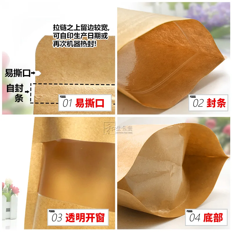 3,9 ''x 5,9'' (10x15 см) коричневая крафт-бумага с прозрачным окошком, стоячая упаковочная сумка для стандартной молнии, сумка с замком