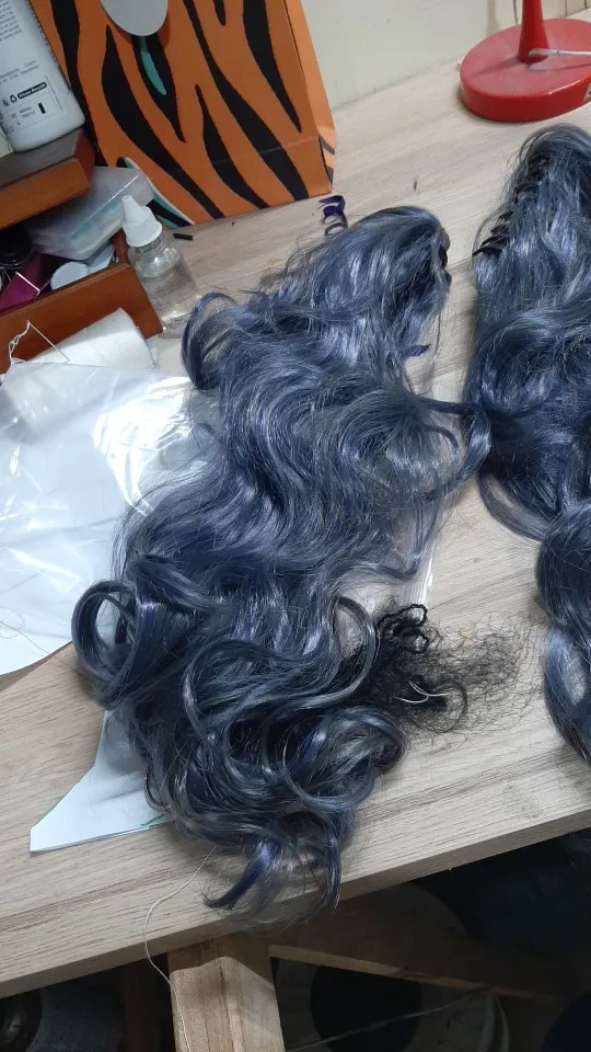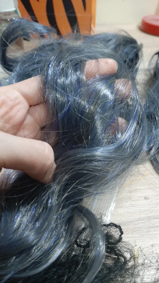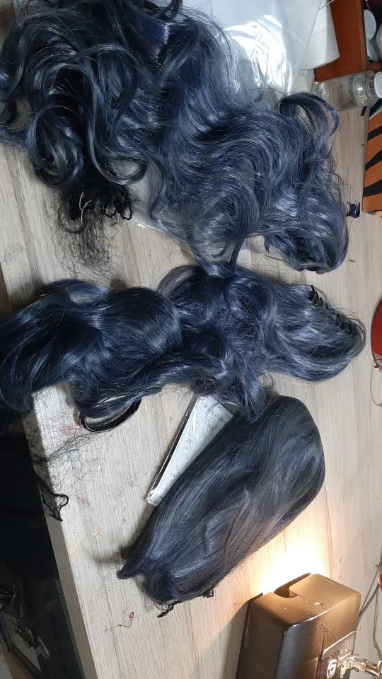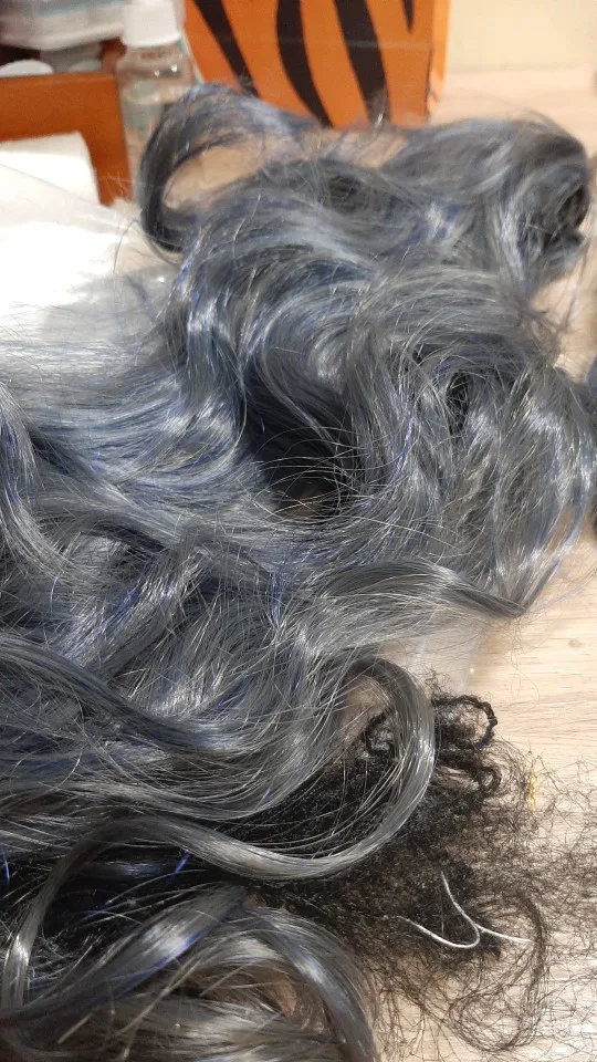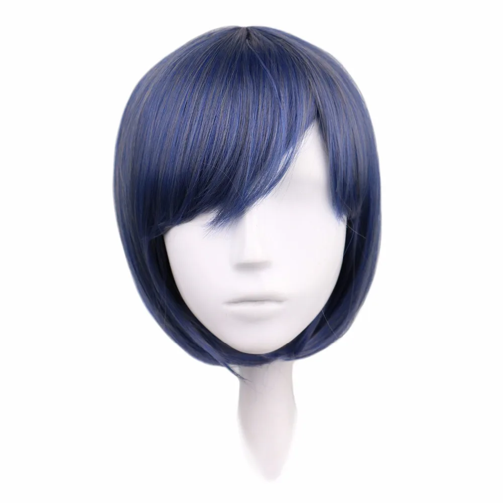 QQXCAIW длинные волнистые косплей Черный Батлер смешанные Синие Серые 70 см синтетические волосы парики