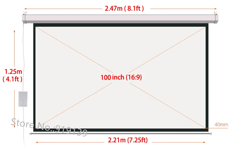 Примечание: моторизованный экран доступен от 120 В переменного тока до 240 В или в переменного тока.