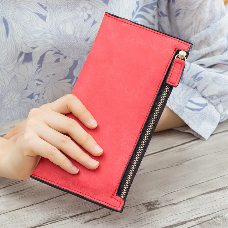 Женский кошелек на молнии, дизайнерский тонкий длинный кошелек, клатч, однотонный, с ремешком для телефона, монет, кредитных карт, 2019