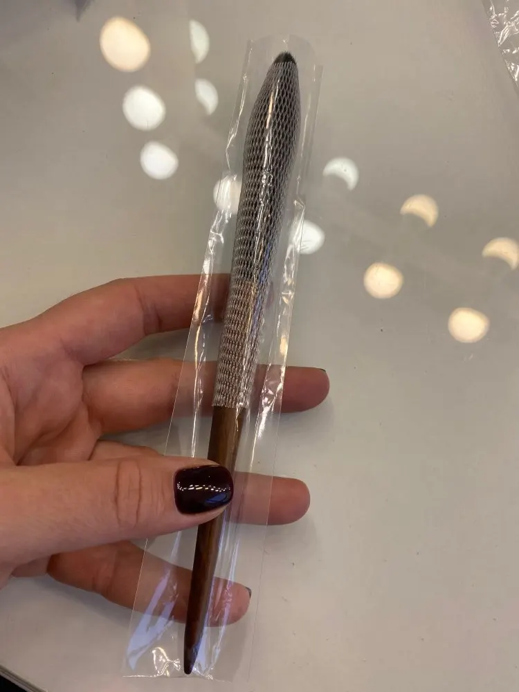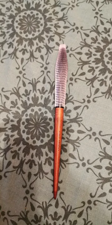Пензлик доставили швидко, менше місяця. Упакований добре, зверху надійна захисна сіточка. Ще не пробувала у використанні, але ворс на дотик м‘який, не колючий, дуже якісний на свою ціну. Пензлик зібраний акуратно, ворс не провалюється. Дуже красивий і лаконічний дизайн, приємно тримати в руках. Дякую!)))