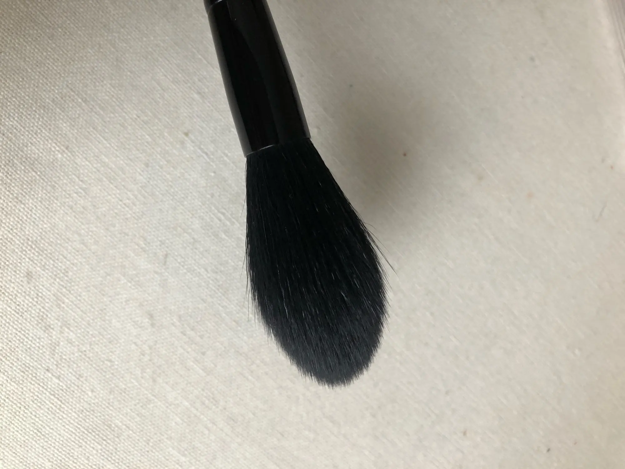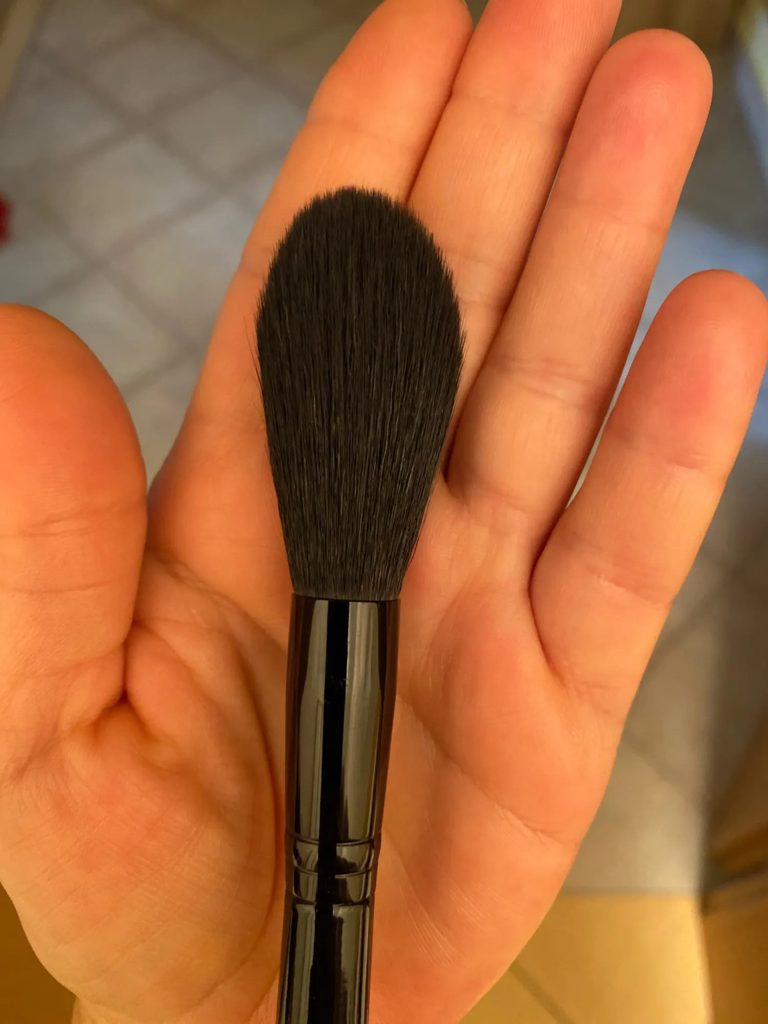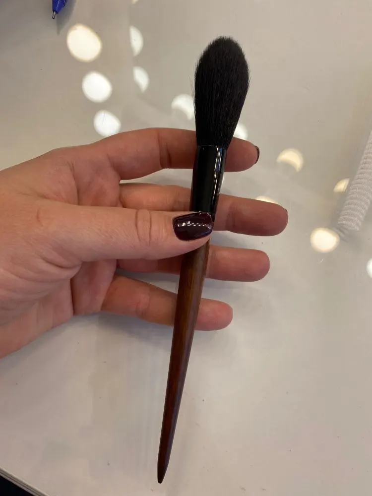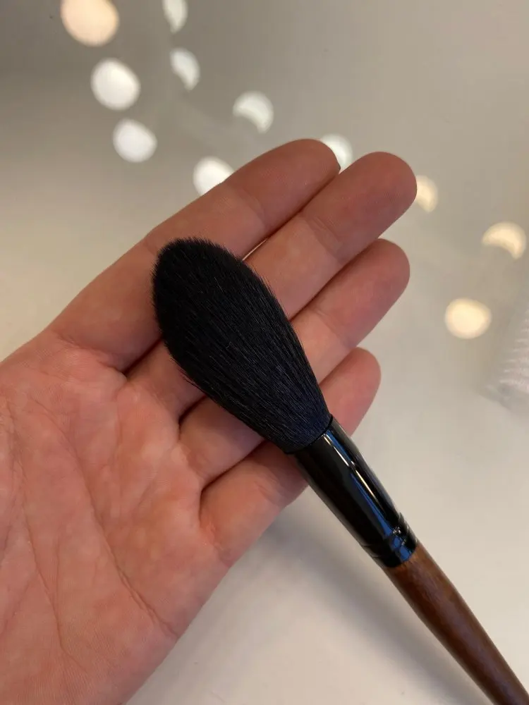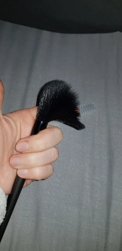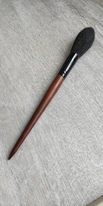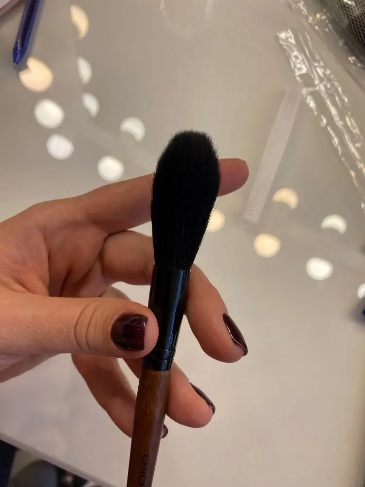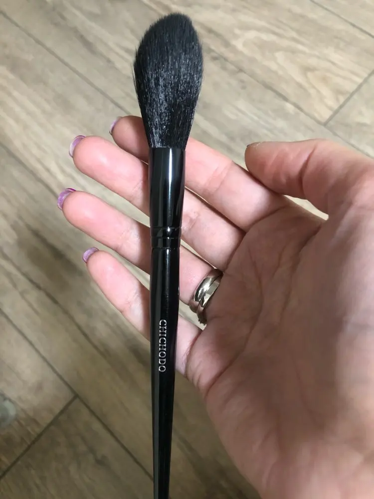 Замечательная кисть для хайлайтера, нанесение деликатное переборщить с продуктом невозможно , очень мягкая ,берите не пожалеете!
