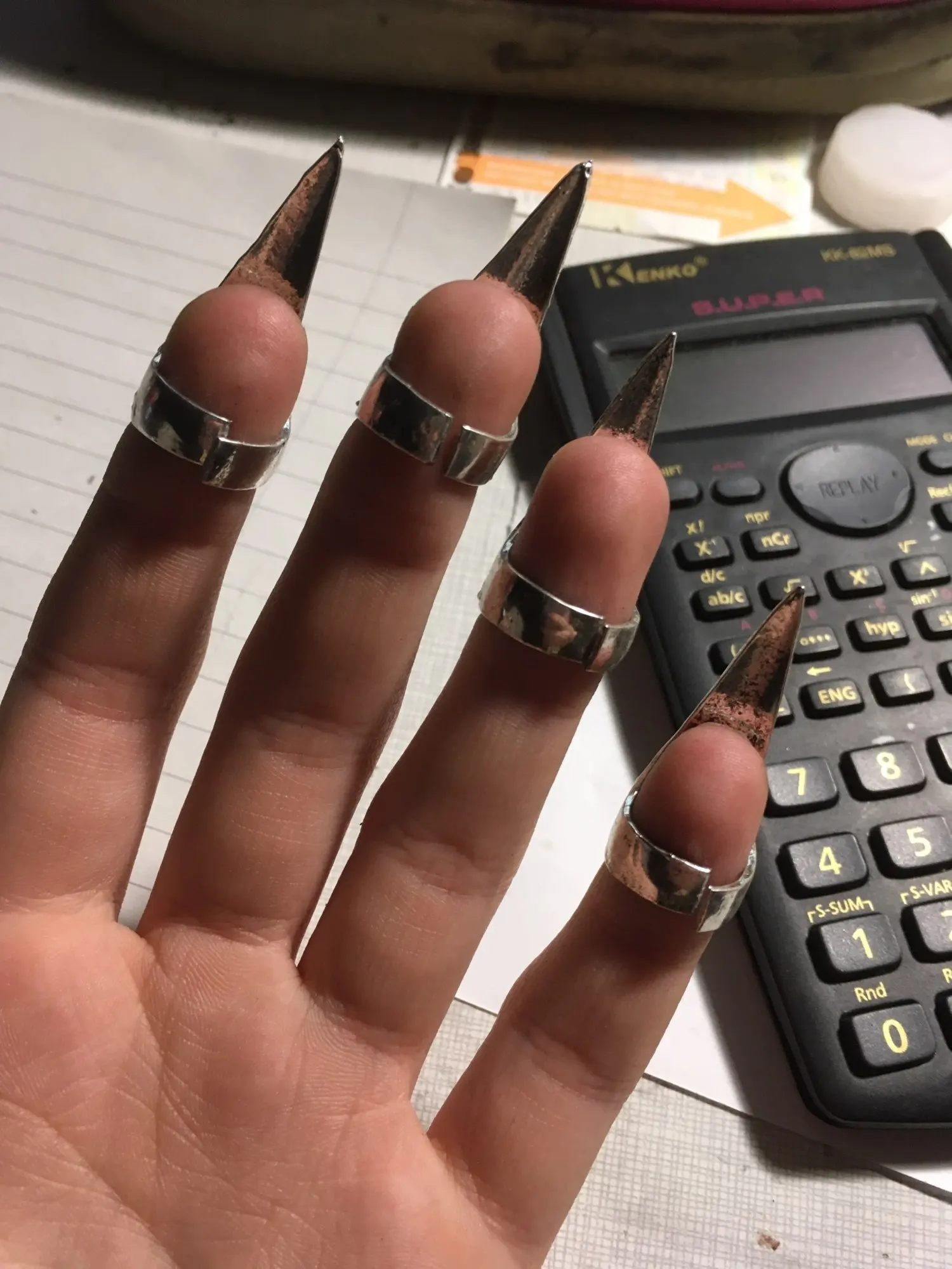 Кольца достаточно большие, на тонкие пальцы будут навеваться до конца )) а не так как хотелось ( на ноготь )