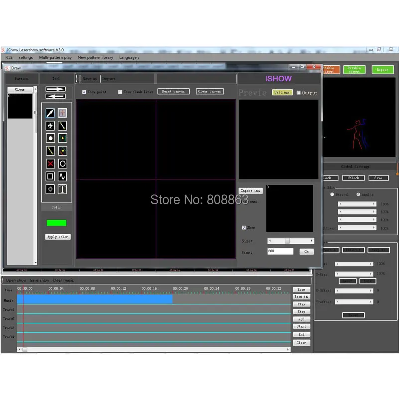 Это новейший Ishow V3.0, программное обеспечение iShow Laser Show использует компьютер RJ45, использует лазерный светильник ILDA connect с функцией интерфейса ILDA, можно использовать, вы можете редактировать свой логотип, текст, анимация, реклама, название компании, свадьба, время приема, танцевальный зал эффект текст атмосферы и т. Д., Выход того, что вы видите лазерный светильник проекции на занавес;