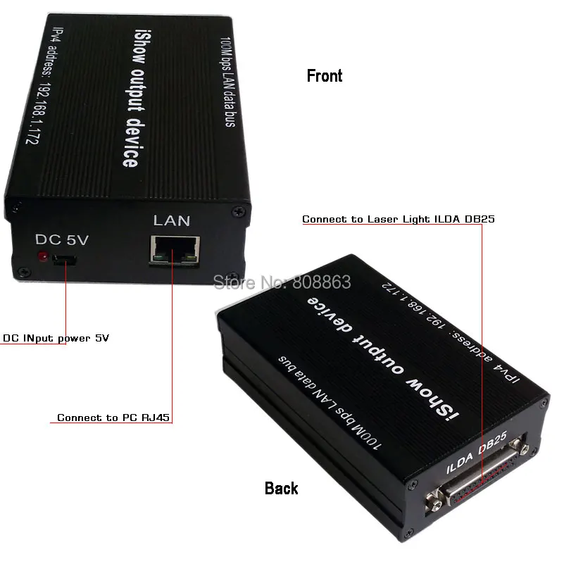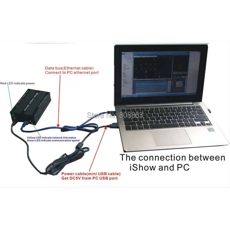 К компьютерному интерфейсу:Интерфейс RJ45, используйте разъем RJ45 для компьютера, IP4V, статический ip-адрес iShowV3 192.168.1.172, маска подсети 255.255.255.0, поэтому для этого требуется ваш компьютер IP с тем же сегментом сети. Пример Fox; Вы можете установить ip-адрес вашего компьютера как 192.168.1.5, маска подсети как 255.255.255.0; (Если ваш компьютер без Ethernet или не доступен, вы можете купить адаптер USB к Ethernet;)