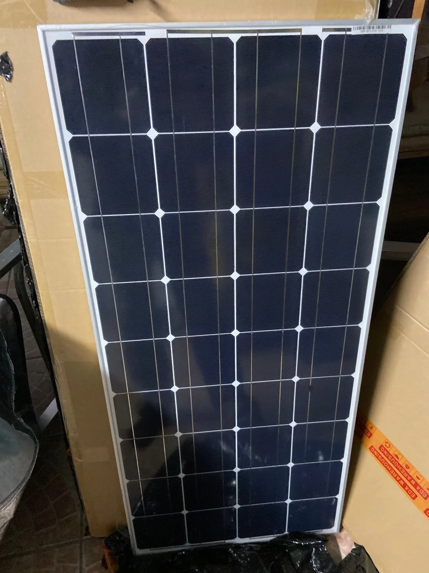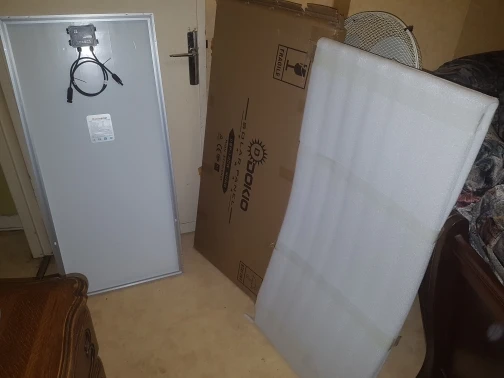 Доставка была быстрой, в идеальном состоянии. Я заказал 2 панели, они оба, кажется, работают хорошо; Я ориентировал их перпендикулярно солнцу, и вольтметр указывал 21-22 в без нагрузки. Ток еще не был протестирован.