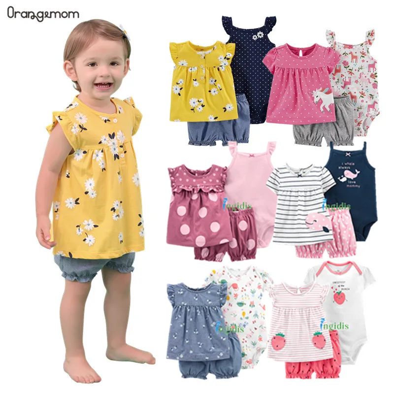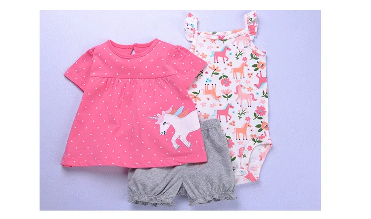 Летние платья 2021 г., комплект одежды для маленьких девочек, хлопковая домашняя одежда для маленьких девочек, 15 цветов, короткий костюм с единорогом для младенцев