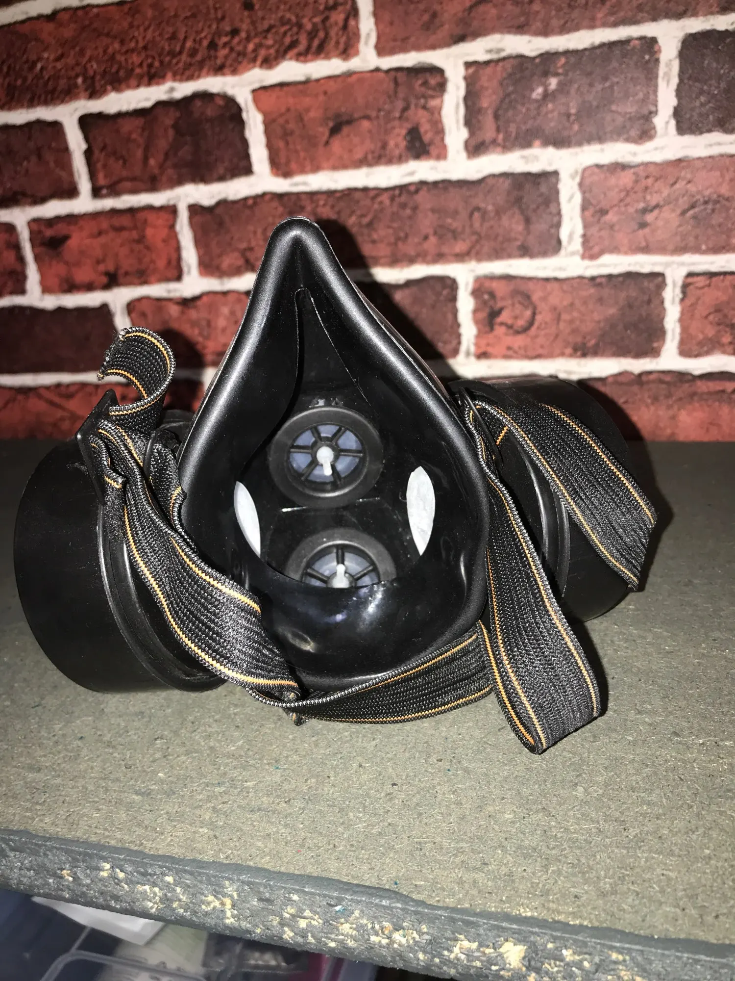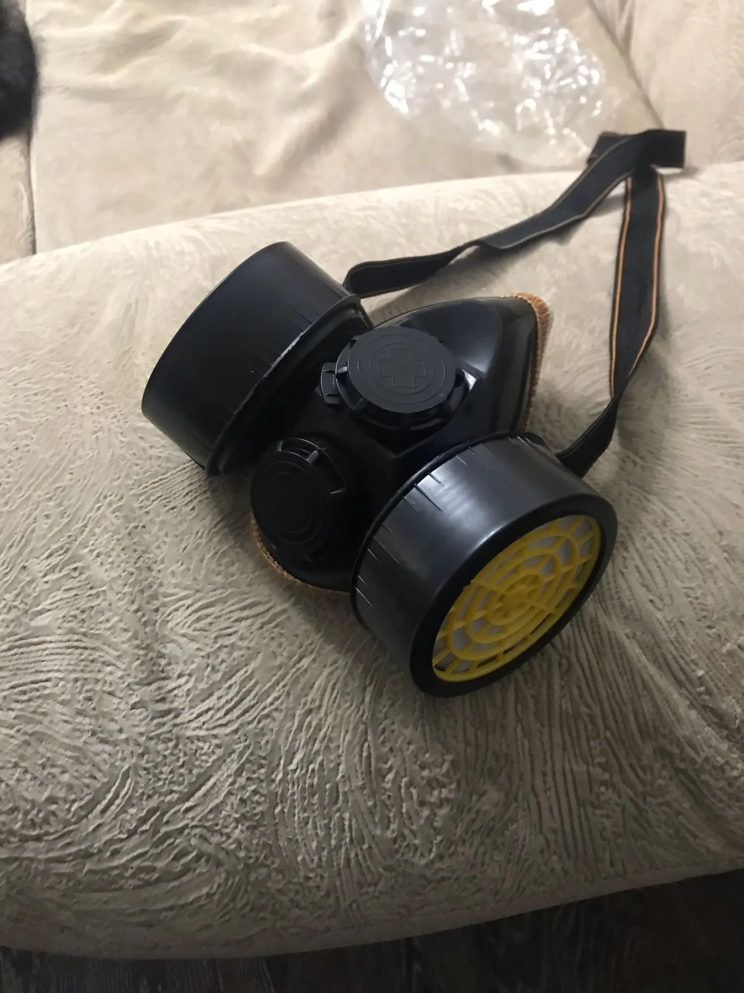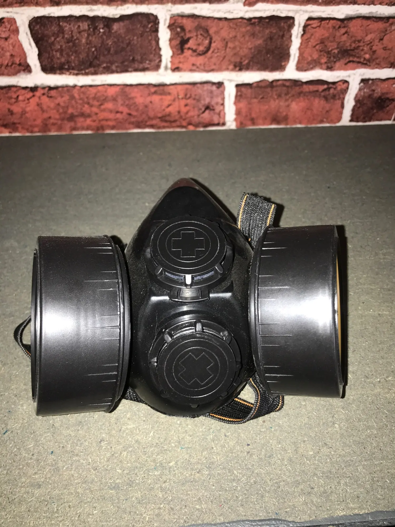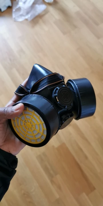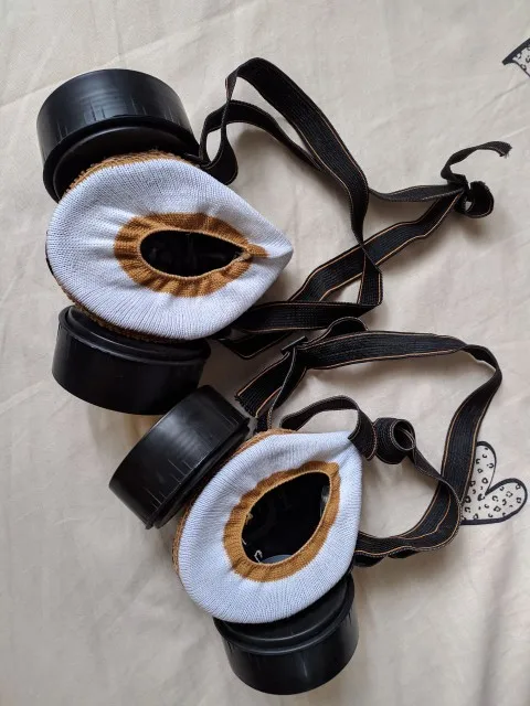 Газовая маска, как показано. Хороший размер и удобно носить. Не изготовлен из кремния, но достаточно жесткий, но достаточно гибкий. Канистры не были закрыты. У меня есть сомнения, что крепление держателей канистра к маске герметичное, потому что их легко поворачивать и Материал маски не очень гибкий. Резинка широкая и удобная.