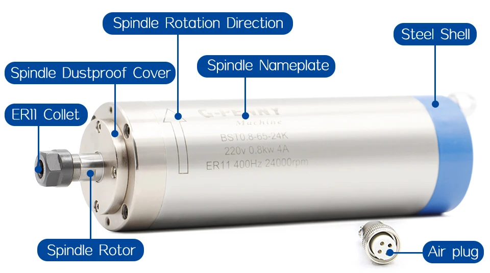 Во время нормальной работы шпиндель с воздушным охлаждением часто сталкивается с феноменом тепла, всегда проверяйте ли корпус шпинделя с воздушным охлаждением и засоряющую пыль воздуховода. При засорении пыли, чтобы быстро очистить. Если вы не Очистите устройство, его легко сжечь.