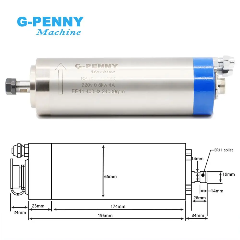 1 & 800w ER11 шпиндель с водяным охлаждением 4 подшипника 65x195mm