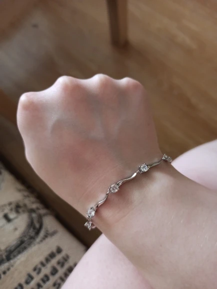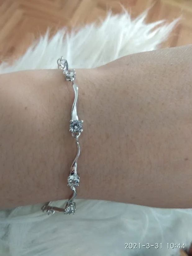 В общем-то за свои деньги неплохой внешний вид. Симпатичный браслет. Качество мне не очень нравится, звенья лежат неровно, браслет слегка перекручен, один камешек другого цвета. И к сожалению, через два дня носки браслет порвался, пришлось чинить....