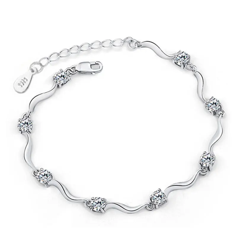 Женский браслет с фианитами, винтажный посеребренный браслет с кристаллами, 2020